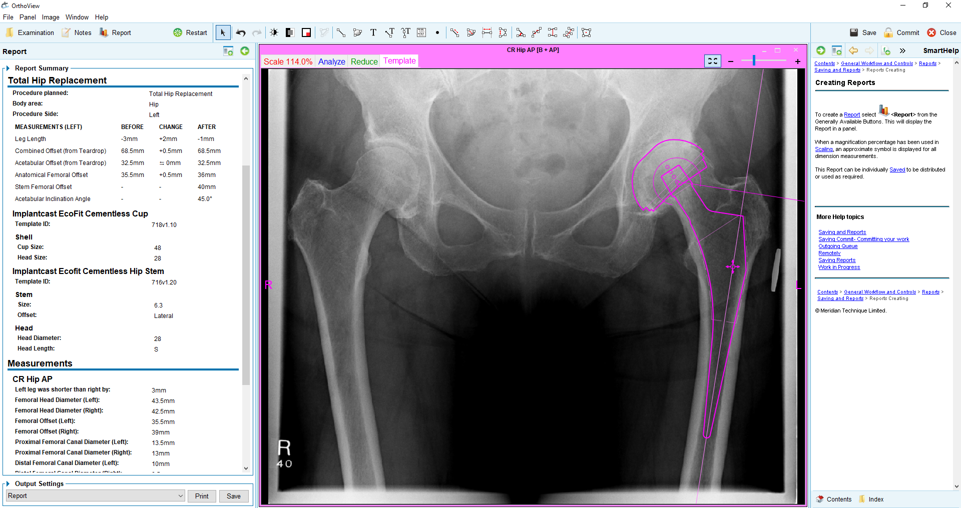 4. Wykonujemy pomiary anatomiczne z wykorzystaniem gotowych, wstępnie spozycjonowanych narzędzi. Automatycznie wyświetlają się nam wszystkie wyniki pomiarów.